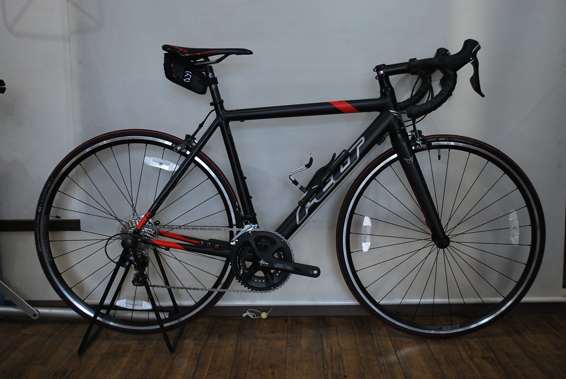 FELT F95 サイズ480カラーは画像のマットダークチタンブラックとレッドがあります。(適正身長160~170cm)アルミフレームにシマノSORAコンポ搭載のロードバイクです。2015年の定価は105700円で2016年は117700円に値上がりしましたのでスペック外観もほとんど変わらないこの2015年モデルを特価85000円(税込)更にこちらの